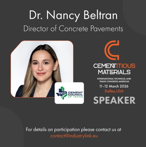 Nancy Beltran is the Director of Concrete Pavements for the Cement Council of Texas (CCT), with research experience in concrete pavement analysis and finite element modeling. Since joining CCT in August 2019, she has focused on expanding the use of cement in concrete paving applications by promoting sustainable, resilient solutions for the design, construction, maintenance, and rehabilitation of pavement systems. Her technical expertise includes continuously reinforced concrete pavement (CRCP) design, optimized concrete mix development, and the implementation of Type IL blended cements to reduce carbon impacts.